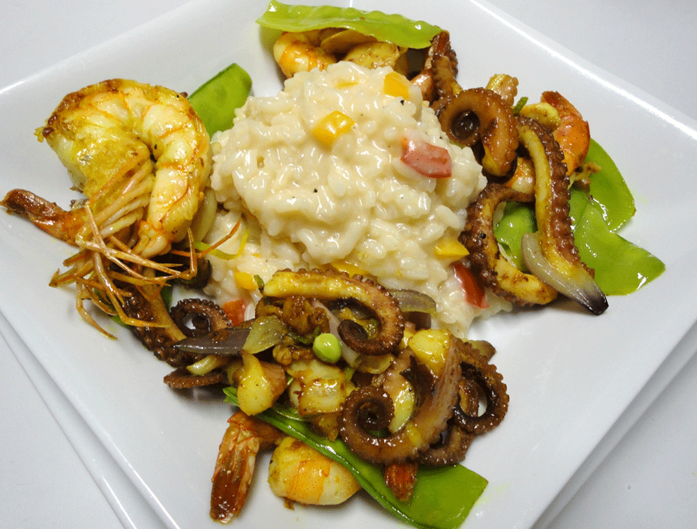 Na reunião, foram apresentados todos os pratos desenvolvidos, para que os empresários conhecessem o trabalho dos outros restaurantes. Entre as delícias, muitas com frutos do mar, como Camarão com molho de abacaxi, Congrio a Quatro Mani, Tranche de Linguado ao molho de Champagne e Frutos da Costa. As carnes também têm espaço com as receitas Vitela Dom Monaco, Combiné Excellence, Cordeiro Pop e Magret de pato com confit de cebola roxa ao mel. Há ainda pratos com influência italiana, como a Massa negra com molho de frutos do mar, Linguini Toscana e Papardelle al Zaferano com Ragu di Agnelo. Na foto Frutos da Costa, prato desenvolvido pela Tatuíra Petisqueira, de Bombinhas.