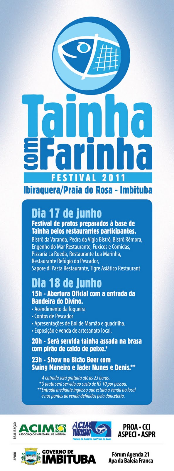 O Festival faz parte dos festejos dos 53 anos de emancipação política do município de Imbituba e tem como objetivo oferecer ao turista e à comunidade local uma série de eventos, tais como, observação da pesca e gastronomia a base de tainha, além de eventos que contemplam a cultura e artesanato local. São 10 restaurantes da Praia do Rosa / Ibiraquera que estão participando, entre eles o Restaurante Engenho do Mar, do Grupo Vida Sol e Mar.