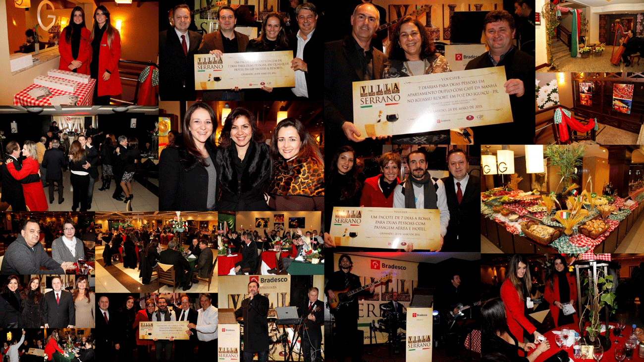 O ápice do pacote foi o Jantar Temático Italiano com show do tenor Dirceu Pastori e culinária dos chefs Marcelo Hartmann e Facione Biasi. Na ocasião também foi sorteada entre os presentes uma viagem à Itália, com todas as despesas pagas. “Nossa ideia é realizar outros dois jantares temáticos no Serrano ainda este ano. Um, no início de setembro, com foco na culinária mexicana; e o outro em novembro, voltado para gastronomia mexicana . Em ambos sortearemos pacotes internacionais aos presentes”, adianta o Diretor da GJP Hotéis & Resorts, Baltazar Saldanha. O próximo será em Setembro SABORES DA ESPANHA e o próximo em Novembro SABORES DO MÉXICO. Os ganhadores da viagem a Roma é o casal Jorge e Micheline Braga tem foto deles segurando o super cheque. Também foram sorteados dois pacotes para duas pessoas em hospedagem para os hoteis da rede GJP.