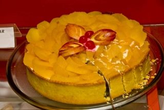 Dentro da massa assada, coloque primeiro a metade do creme feito com a nata e o açúcar, e depois o disco de pão de ló, que deve ser umedecido com a calda das maçãs cozidas. A seguir, coloque o restante do creme de nata Cubra com as maçãs, decorando de forma uniforme. Passe geléia de maçã dissolvida em um pouco de água por cima com um pincel, para dar brilho. Bom apetite!