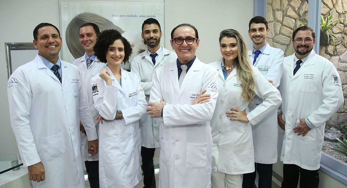 Equipe de veterinários: em 1º plano, Carlos Dantas, Lara Tavares, Almir Tavares, Shimênia de Albuquerque; em 2º plano, Renato Vela, Erivaldo Batista Jr. Anderson Santos e Filipe de Albuquerque