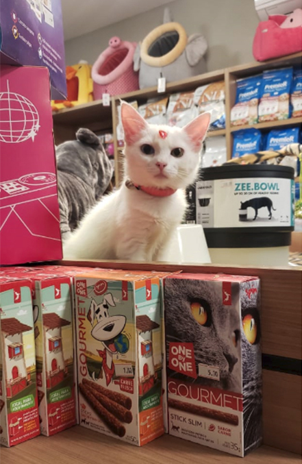 A anfitriã Nathana Ribeiro no flagra de Sun Sun dando uma palhinha. (Crédito: Sun Sun)