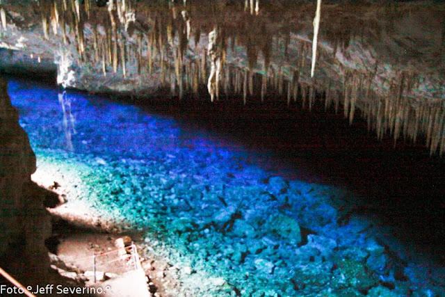 Minha primeira opção de passeio foi a Gruta Azul. Após percorrer uma trilha conhecendo diversos espeleotemas, pode-se visualizar o famoso lago de águas intensamente azuis e com mais de 80 m de profundidade. Por sua beleza e fragilidade, a área da gruta foi transformada em Monumento Natural, garantindo sua preservação.