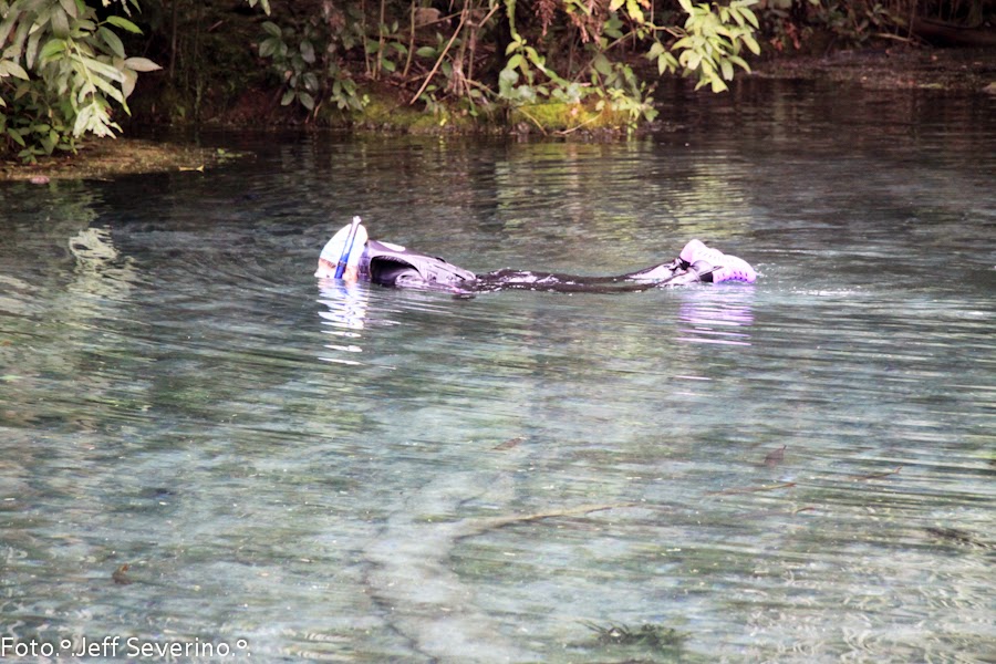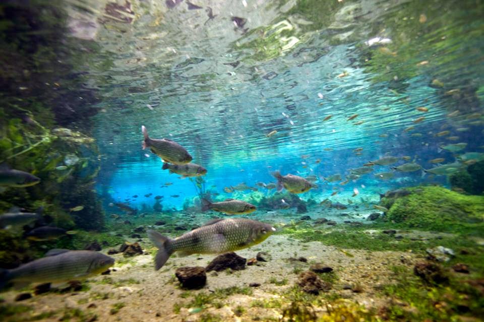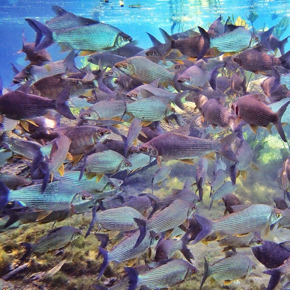 O início da flutuação é na piscina natural da nascente do rio, onde todos podem se maravilhar com a pressão e transparência da água. Neste local, o guia permitirá um tempo livre para explorar o mundo subaquático e brincar um pouco, deixando o grupo fazer apneias e se divertir.