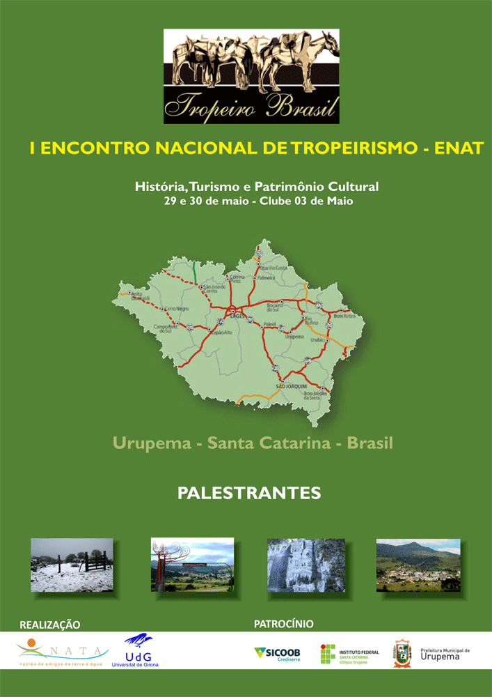 Para sua realização foi fundamental o irrestrito apoio da Prefeitura Municipal de Urupema, assim como também de diversas instituições educacionais e culturais, empresas comerciais e população de Urupema e Serra Catarinense, que abraçaram a ideia. Palestrantes e convidados especiais presentes ao 1º ENAT – Urupema estão entre os mais renomados pesquisadores da cultura tropeira e se dedicam a resgatar, promover, divulgar e preservar a temática do TROPEIRISMO em todo país.