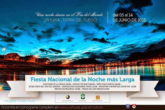 Falando nisso, já neste próximo dia 06 de junho é celebrado em Ushuaia a uma festa muito importante a “A noite mais longa (os dias são curtos no inverno em Ushuaia) é também o marco da abertura da temporada de inverno 2015 no Fim do Mundo. A noite mais longa do ano acontece por conta do solstício de inverno no hemisfério sul onde o sol estará sobre o horizonte aproximadamente das 10hs às 17hs. A Prefeitura de Ushuaia como todos os anos já preparou os festejos que acontecerão entre os dias 5 e 14 de junho, com diversas atividades tanto para a comunidade como para todos os turistas que tiverem a sorte grande de estar visitando a cidade nesses dias.
