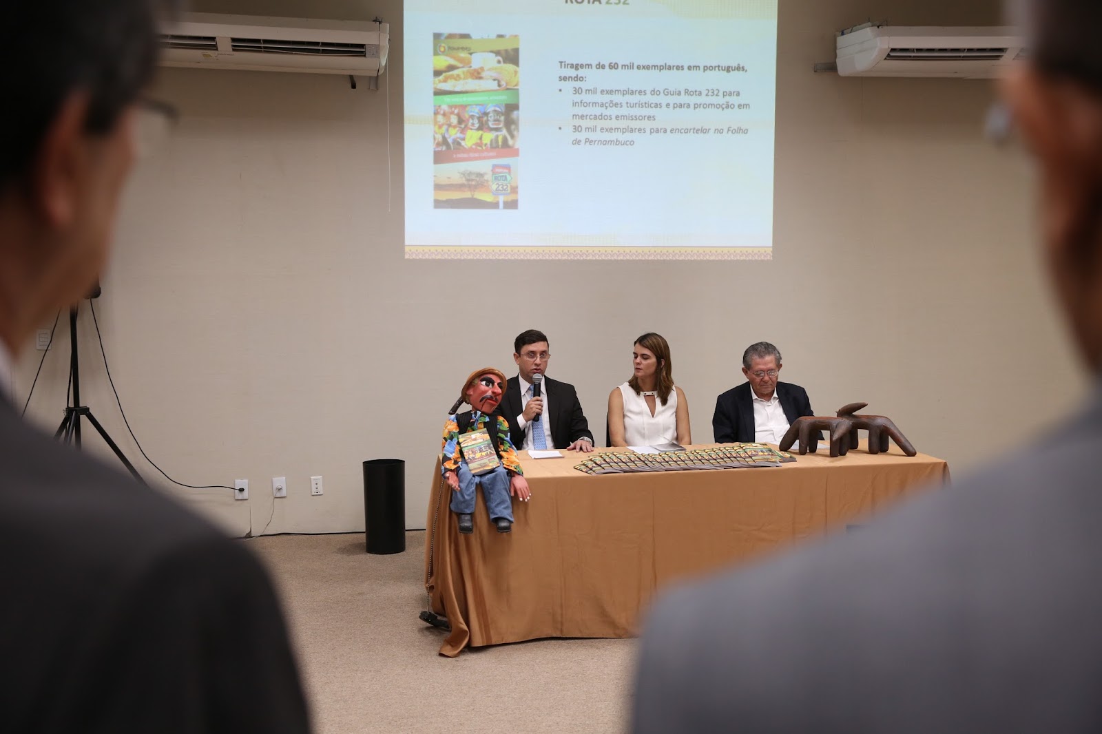 Nesta quinta-feira (17), a Secretaria de Turismo, Esportes e Lazer de Pernambuco (Seturel-PE), por meio da Empresa de Turismo de Pernambuco – Governador Eduardo Campos (Empetur), lançou a edição atualizada 2015 do guia Destino Rota 232: gastronomia, artesanato e outras dicas culturais, na sala Tamandaré, no Centro de Convenções de Pernambuco. A publicação contempla 120 estabelecimentos que estão localizados ao longo dos 553 km de extensão desta rodovia, que é considerada a “espinha dorsal” do Estado. “O guia existe há quatro anos. Nesta edição, resolvemos inovar o material com a quantidade de municípios abordados, que passou de 17 para 23, graças à inserção de localidades próximas ao perímetro daquela rodovia. Isso resultou na ampliação do leque de atrativos informados, incluindo opções ligadas à gastronomia e ao artesanato, além de itens do patrimônio histórico e natural”, explica a presidente da Empetur, Ana Paula Vilaça.