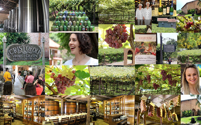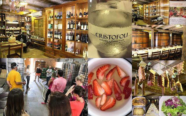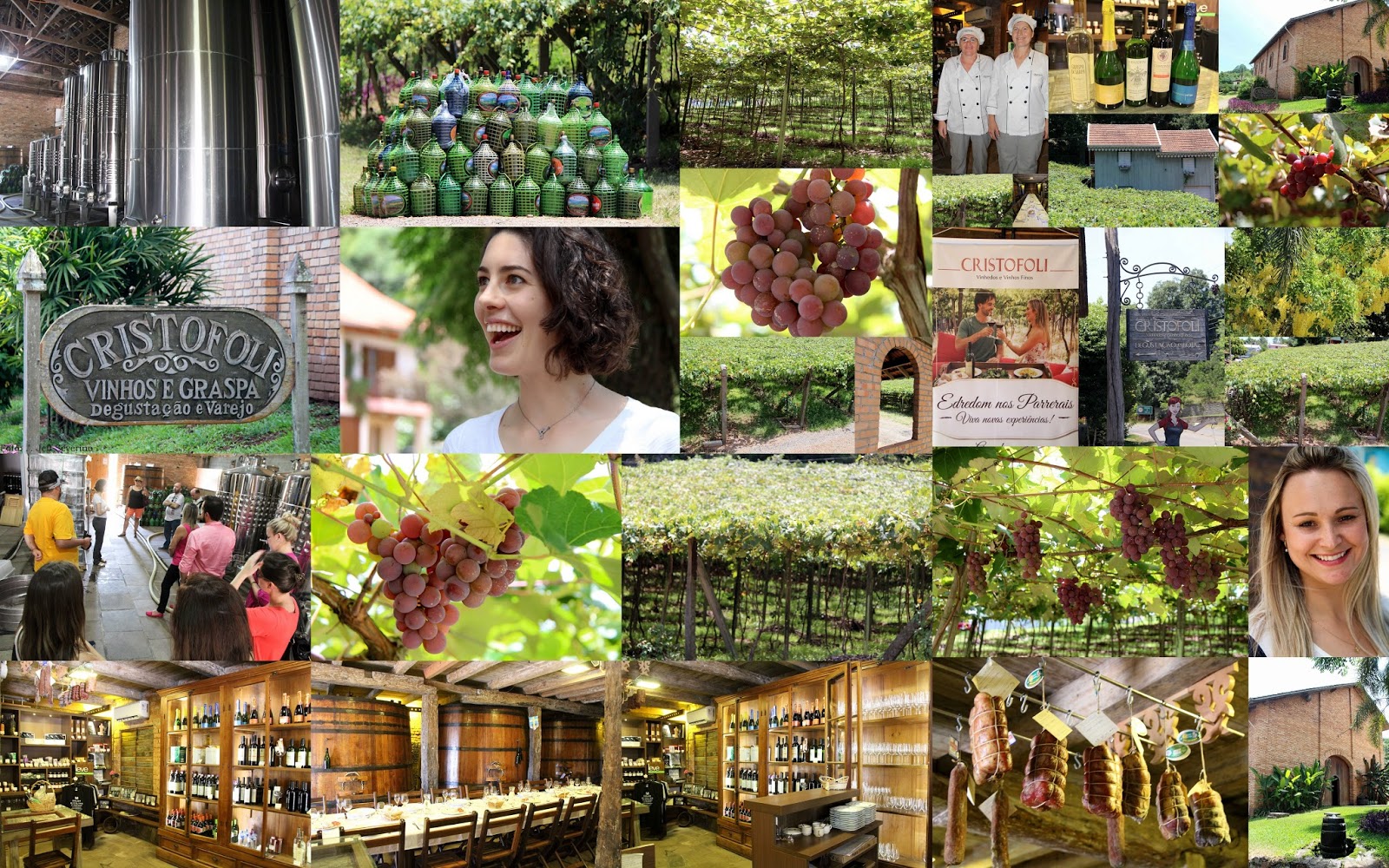 Na vinícola é possível acompanhar o processo de elaboração do vinho e da graspa com acompanhamento da própria família Cristofoli. Nas visitas, além de conhecer tudo o que cerca o mundo do vinho, da colheita da uva nos parreirais ao seu engarrafamento, o visitante tem contato com a cultura italiana, através de seus hábitos, sotaques e tradições. Além disso, a vista dos parreirais que contornam o Rio das Antas é um espetáculo a parte. Um dos destaques da vinícola é o Spazio del Vino, que é o porão da casa paterna em frente à Vinícola, o ambiente foi restaurando mantendo sua identidade e valores, de maneira a possibilitar fazer a recepção dos visitantes e oferecer almoços e jantares. Nosso almoço foi exatamente aí. De lamber os dedos. O almoço é preparado pela mãe e tia da Bruna.
