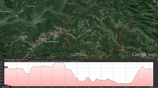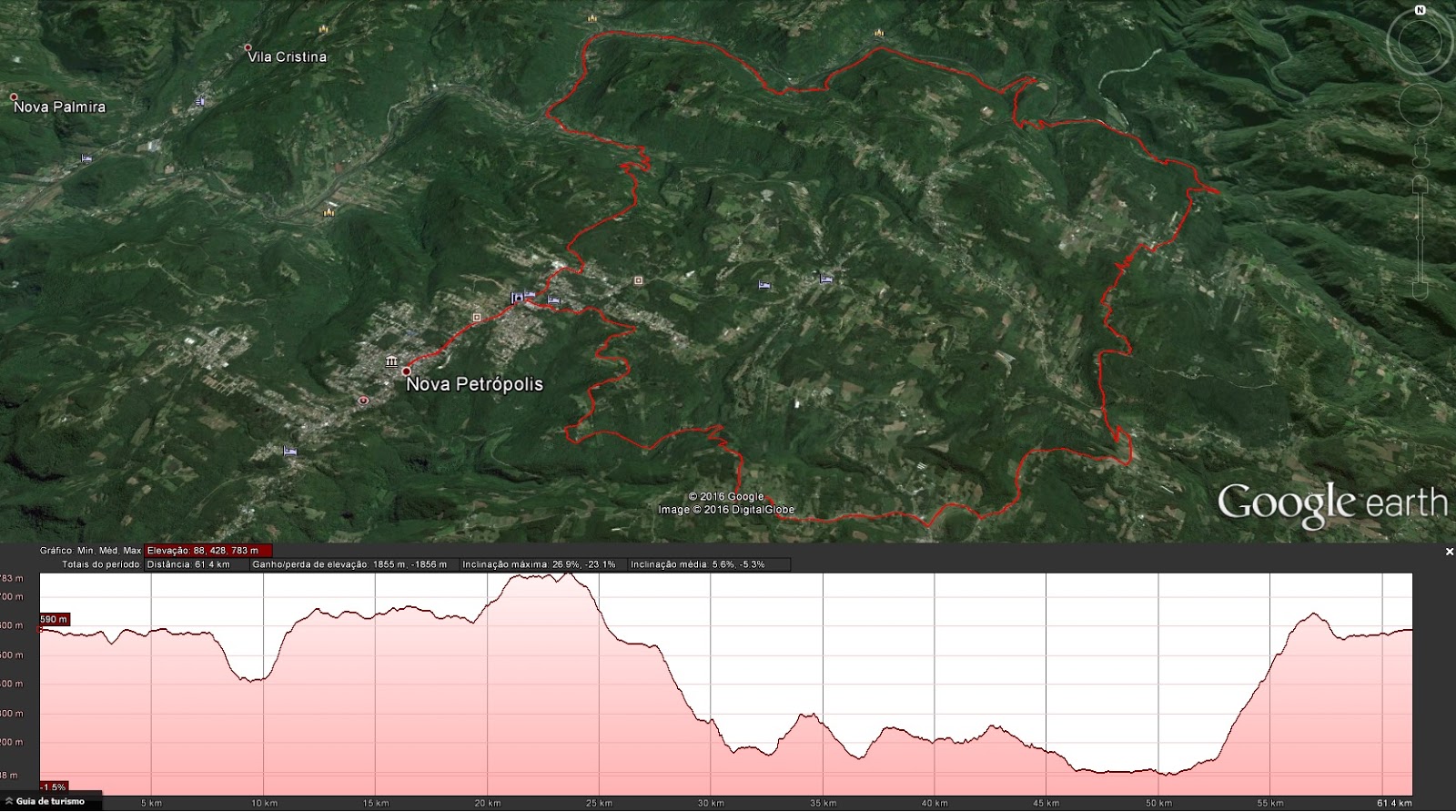 O percurso inédito apresenta elevado nível técnico em 62km de estradas e trilhas pelo interior de Nova Petrópolis. Os atletas sairão a 590 metros do nível do mar, sendo que, o ponto mais alto da prova será a 783 metros do nível do mar e o mais baixo será a 89 metros do nível do mar. No trecho final, os ciclistas subirão 556 metros em 7 km de percurso. Na última quinta-feira, dia 28 de janeiro, o presidente da FGC, Marcos Lorenz; o coordenador do Desporto Municipal, Luiz Port e o diretor do Departamento de Tecnologia em Informação, Gerson Gebhardt verificaram as condições das estradas e trilhas percorrendo o trajeto mapeado.