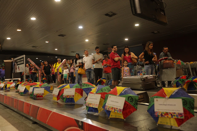 Ao chegarem à esteira para retirar as bagagens, todos os passageiros dos quatro voos, algo em torno de 800 pessoas, encontraram sombrinhas de frevo com seus nomes e uma mensagem de boas-vindas. Além disso, um grupo com 15 bailarinos e oito músicos de uma orquestra de Frevo estavam disfarçados no saguão de desembarque. Os “anfitriões” da folia estavam vestidos de carregadores de malas, com uniformes da Infraero, com roupas de guias turísticos, entre outros disfarces. Os instrumentos da orquestra estavam escondidos. A senha para começar a festa foi a saída de dois bailarinos de frevo de dentro de duas malas que foram colocadas na esteira junto com as sombrinhas. Os passistas fizeram um flash mob da folia.