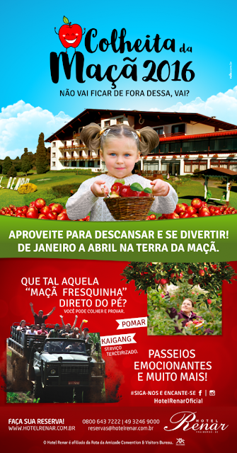 Outra dica fenomenal neste carnaval é colher a tua própria maçã e isso você só consegue passando o carnaval no majestoso Hotel Renar em Fraiburgo, a Terra da Maçã. Desde sua fundação, em 1981, o Hotel Renar vem encantando turistas de todas as regiões do país. Seja por sua arquitetura, estilo alpino-germânico; pela localização, no alto de um morro ou seus jardins deslumbrantes, mais de 150 mil metros quadrados. Pioneiro no meio oeste catarinense – quando o assunto é turismo e lazer – o hotel é o lugar perfeito para quem procura relaxar e manter contato com a natureza, mas não abre mão do conforto e qualidade.