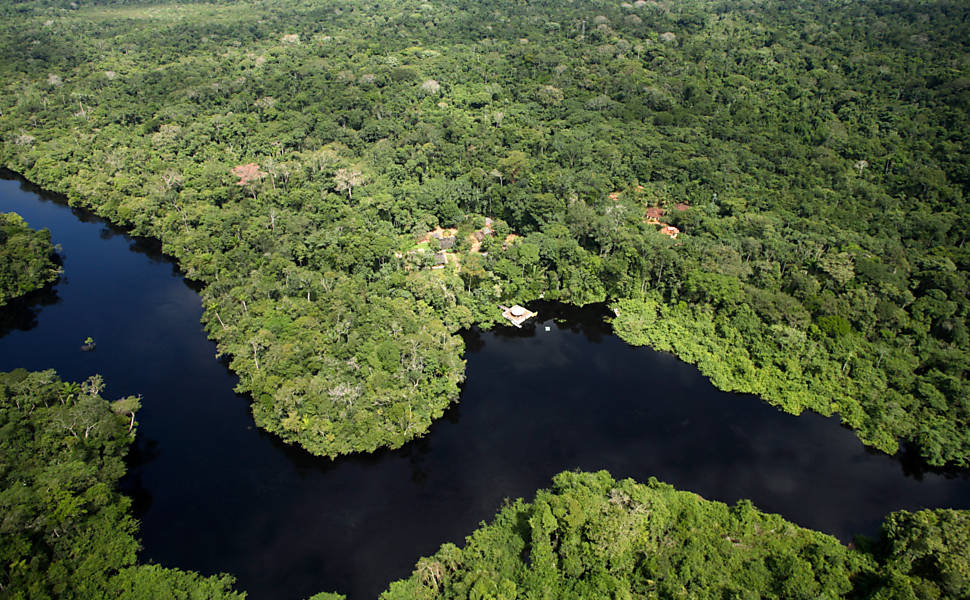 Nós os turistas brasileiros também estamos descobrindo os espetaculares hotéis verdes do Pantanal e da Amazônia. A foto é do hotel Cristalino Lodge, no extremo norte do Mato Grosso, no encontro dos rios Cristalino e Teles Pires. Quem sobrevoa o trecho em que o sinuoso e estreito rio Cristalino desemboca no Teles Pires, no extremo norte de Mato Grosso, deve se esforçar para identificar algo além de água e floresta. Mas é ali, sob a sombra de árvores com até 40 metros de altura, que se consolida um empreendimento que é referência na exploração do turismo de baixo impacto em florestas. Porta de entrada para uma das áreas de maior biodiversidade da Amazônia, o Cristalino Lodge (em Alta Floresta, 800 quilômetros ao norte de Cuiabá) é frequentemente tomado por visitantes estrangeiros, mas tem recebido um número cada vez maior de turistas brasileiros.