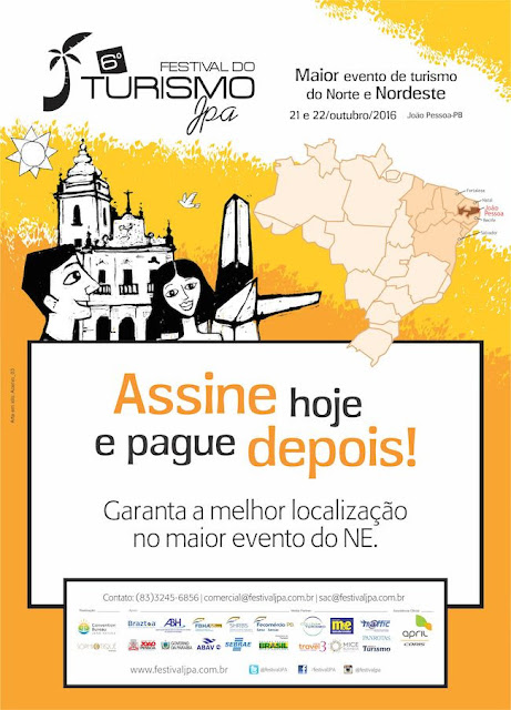 “Vemos a participação no Festival JPA, como uma excelente vitrine do nosso turismo, uma ocasião para exibir nossas belezas naturais, os atrativos turísticos e nossa cadeia turística como um todo, com uma excelente rede de hotéis e restaurantes”, reitera Aninha Costa. Confira o vídeo da última edição. https://youtu.be/Ak44n9Gqqz0 O 6º Festival JPA será realizado nos dias 21 e 22 de outubro de 2016, no Centro de Convenções de João Pessoa. Voltado exclusivamente para profissionais do turismo, o evento contará com feira, rodada de negócios e diversas capacitações.