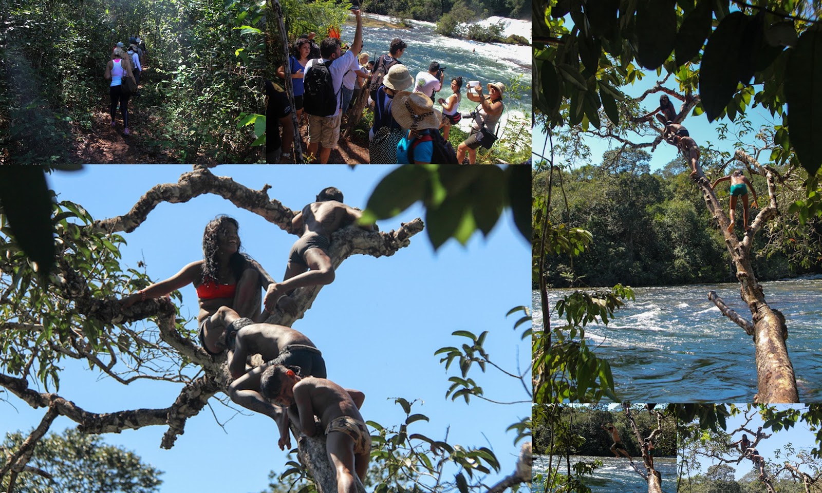 Seguimos margeando o rio até determinado local onde nós, os “homens brancos” tomamos coragem e nos atiramos na água junto com as crianças, que desta vez subiam em árvores altas e das copas se atiravam no rio profundo. Aprendemos muito com esses seres verdadeiramente humanos que nos receberam de braços abertos e nos ensinaram tanto e com tanta simplicidade.