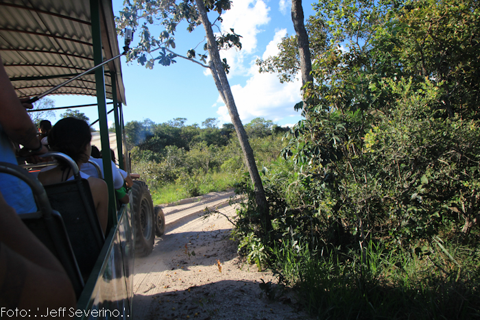 Depois do corpo bem alimentado, siga devidamente acompanhado pela guia, até a as cavernas, começando pela Aroe Jari ou Morada das Almas, significado do nome, é um dos passeios mais bonitos da Chapada dos Guimarães que leva à uma gigantesca gruta de arenito com 1.550 metros de extensão e a maior do Brasil. O acesso é por trilha, uma caminhada de 8 km. Um trator puxando um trenzinho, vamos dizer assim, muito confortável, te ajuda nessa “caminhada”.