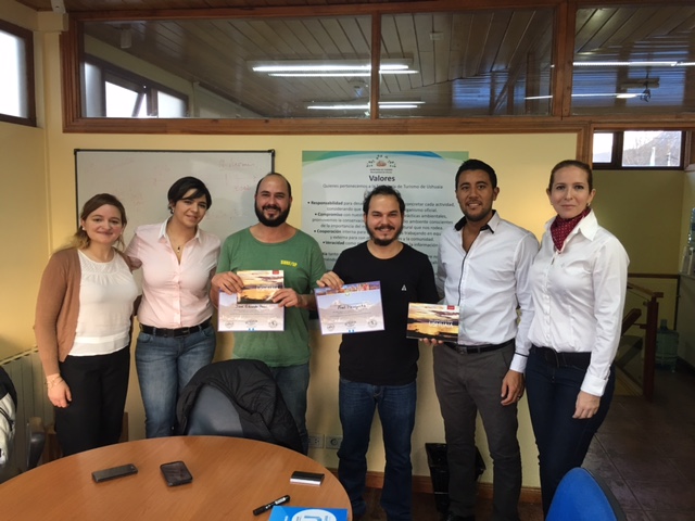 Os irmãos foram recebidos pelo Secretário de Turismo de Ushuaia Juan Chenanuk E por Cristiane Cavalli, responsÁvel pelos Assuntos Internacionais de Ushuaia (direita).