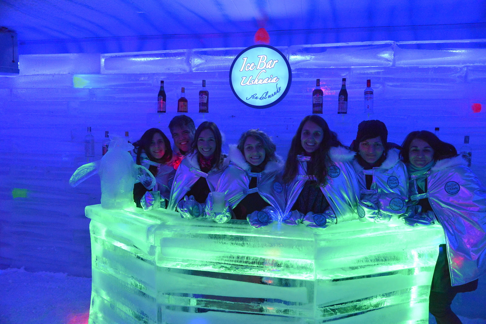 Depois o Ice bar Ushuaia nos convida a colocar capa, luvas e os grampos nas botas para poder desfrutar da experiência de ingressar ao interior do túnel de gelo e permanecer entre 20 a 25 minutos em seu interior, a uma temperatura de -12 a -18 graus apreciando o Ice Bar totalmente “caliente” mas com uma temperatura extrema abaixo zero.