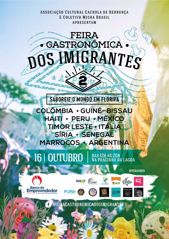 O Instituto Geração de Oportunidades de Florianópolis (IGEOF) apoiou a realização da segunda edição da Feira Gastronômica dos Imigrantes de Florianópolis, aconteceu neste domingo na praça Bento Silvério, na Lagoa da Conceição. Desta vez, o evento contou com barracas que venderam pratos típicos de dez países: Colômbia, Guiné Bissau, Haiti, Peru, México, Timor Leste, Itália, Síria, Marrocos e Argentina. Para a realização da feira, o IGEOF disponibilizou 17 barracas usadas nas tradicionais feiras de artesanato da cidade. O evento, no entanto, foi promovido pela Associação Cultural Cachola de Bernunça e pelo Coletivo Migra Brasil, em parceria com a Feira da Lagoa e a União dos Comerciantes da Bacia da Lagoa. Quem foi encontrou além de opções da culinária local, chope artesanal produzido na região, feira de artesanato, atrações musicais e atividades para o público infantil.