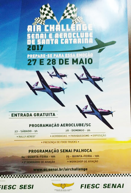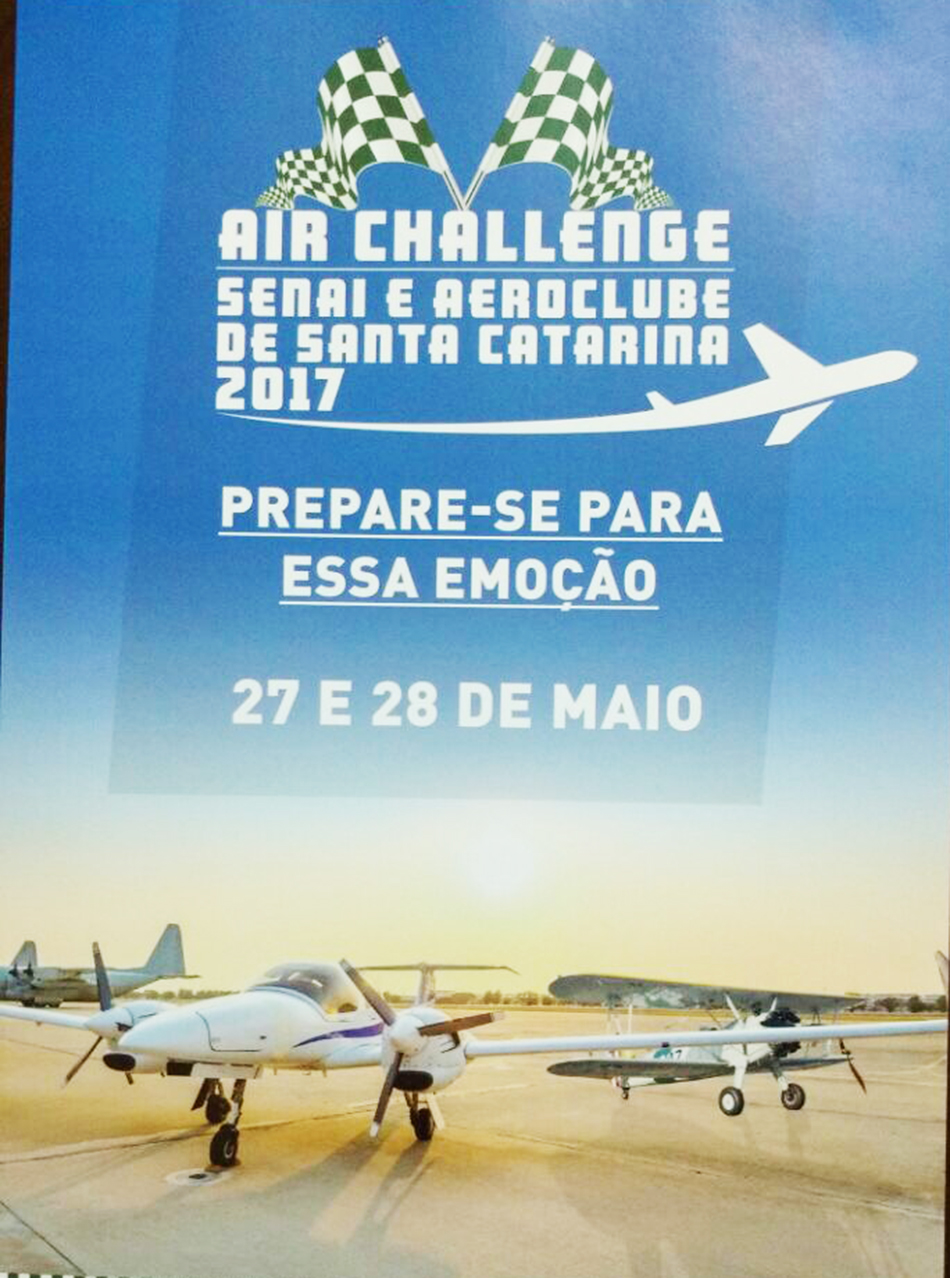 O SENAI e o Aeroclube de Santa Catarina promovem, entre os dias 24 e 28 de maio, em São José e Palhoça, o evento Air Challenge SENAI e Aeroclube Santa Catarina voltado para todo o público apaixonado por aviação. A programação inclui show de acrobacias, paraquedismo, palestras, seminários e um grande rally aéreo que será disputado no Aeroclube de Santa Catarina. O Air Challenge SENAI e Aeroclube de Santa Catarina vem consolidar o papel do SENAI e do Aeroclube de Santa Catarina como referência em educação e formação de profissionais em aviação particular e aviação civil.