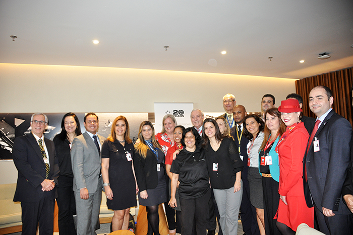 A novidade foi divulgada nesta quarta-feira (10) durante coquetel promovido pela Star Alliance para cerca de 50 convidados no lounge Plaza Premium, da aliança, com direito a bolo e brinde de champagne em alusão a data comemorativa. Prestigiaram o evento representantes da Avianca, United, Lurfthansa, SAS e TAP. Ao saudar os convidados, Ian Gillespie destacou a importância da aliança. “São duas décadas de história, 28 empresas que transportam anualmente 680 milhões de passageiros em 191 países com uma média de 1.300 voos diários”,destacou.