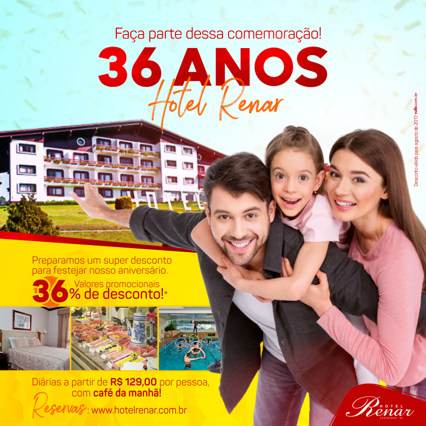 HOTEL RENAR COMEMORA 36 ANOS DE SUCESSO EM AGOSTO, MAS QUEM GANHA O PRESENTE SÃO OS HÓSPEDES