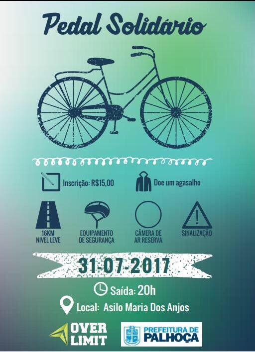 Vem aí mais uma edição do PEDAL SOLIDÁRIO para o ASILO SANTA MARIA DOS ANJOS. Vamos ajuda-los a não fechar as portas. A entidade luta a duras penas para manter suas portas abertas e pela sobrevivência daqueles que lá se abrigam. Ao retornarmos do nosso pedal seremos recepcionados com uma deliciosa SOPA e sorteios de brindes dos apoiadores do pedal. Ponto de partida as 20h do Asilo: Rua Padre João Batista Réus – Caminho Novo, Palhoça – SC. As Inscrições serão feitas na hora. CHAME SUA TURMA e venha pedalar para o bem.