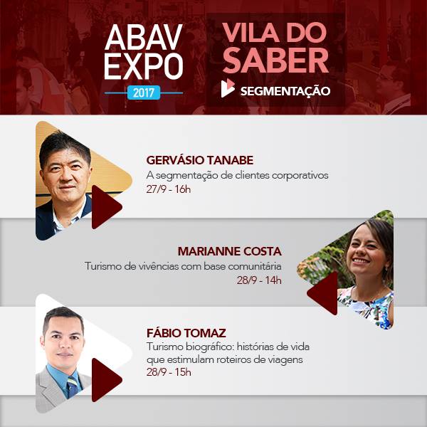 Da prevenção de fraudes às oportunidades da revolução tarifária no aéreo, mesas redondas lançam temas que dominam o universo dos agentes de viagem. Esses assuntos serão discutidos nas mesas redondas da Vila do Saber. Para participar, é preciso realizar o credenciamento para o evento e, depois, fazer a inscrição nas atividades de interesse. Com perto de 5 mil inscrições prévias para as atividades e 42 palestras com a lotação já esgotada, a Vila do Saber – espaço voltado à capacitação e difusão do conhecimento na 45ª ABAV Expo Internacional de Turismo & 48º Encontro Comercial Braztoa – lança importantes discussões que permeiam o mercado do agenciamento de viagem.
