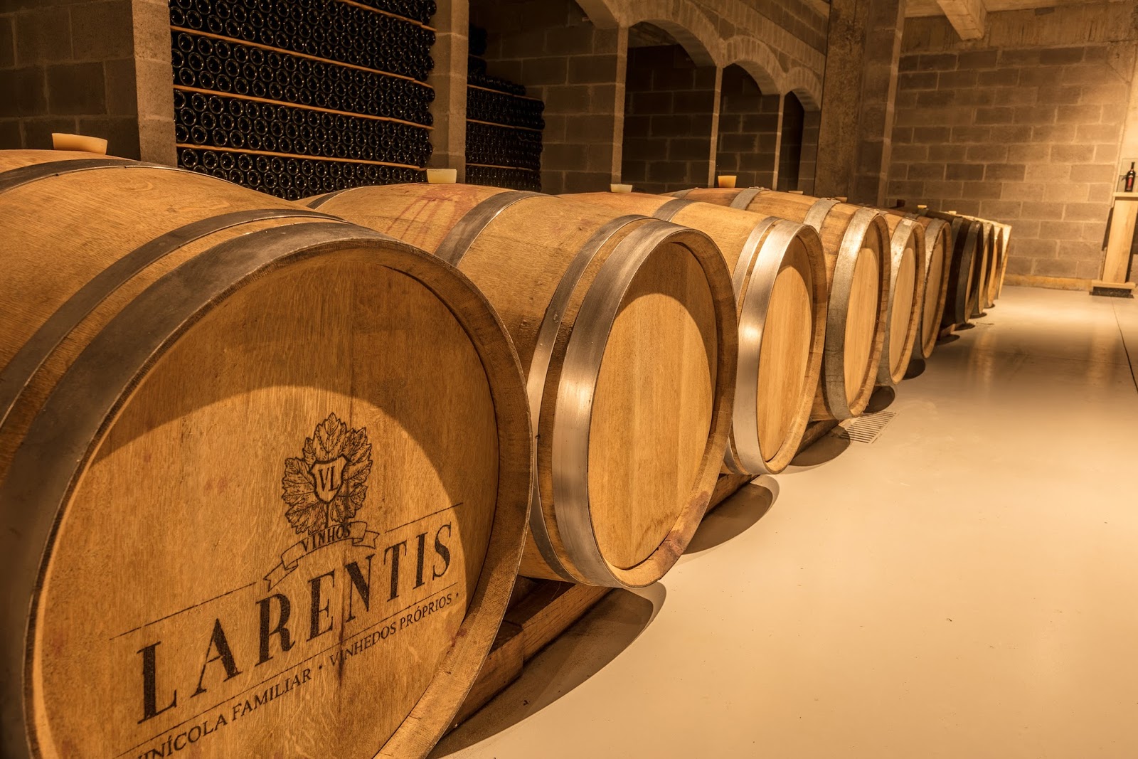 Com capacidade para abrigar 80 mil garrafas e 150 barricas, a cave acolhe todos os vinhos da Larentis, especialmente os de guarda das linhas Gran Reserva, Cepas e Reserva. Cada garrafa, dependendo do tipo de vinho, pode permanecer no ambiente de 6 meses, no caso dos mais jovens, até 18 meses.