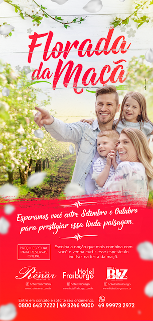 Hotel Renar, em Fraiburgo, a nossa Terra da Maçã, é a FLORADA DA MAÇÃ. As macieiras dão um show de encanto e esplendor na fase mais bela deste ciclo, o encantador espetáculo dos pomares de maçã.