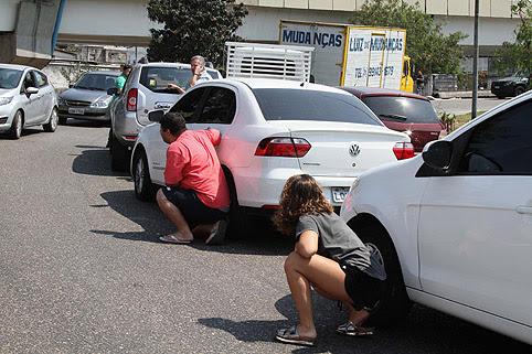 Motoristas se protegem de tiros perto do Complexo da Maré, no Rio de Janeiro; a presença dos militares na cidade reabre debate sobre o limite legal de ação das Forças Armadas