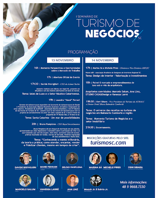 O Seminário Turismo de Negócios SC leva a Balneário Camboriú o estímulo a atração de investidores e a concretização de negócios nos mercados de luxo, imobiliário, decoração e design.