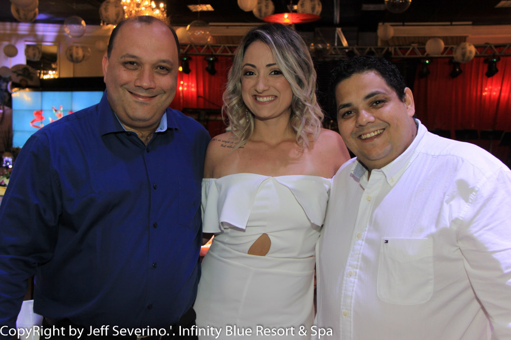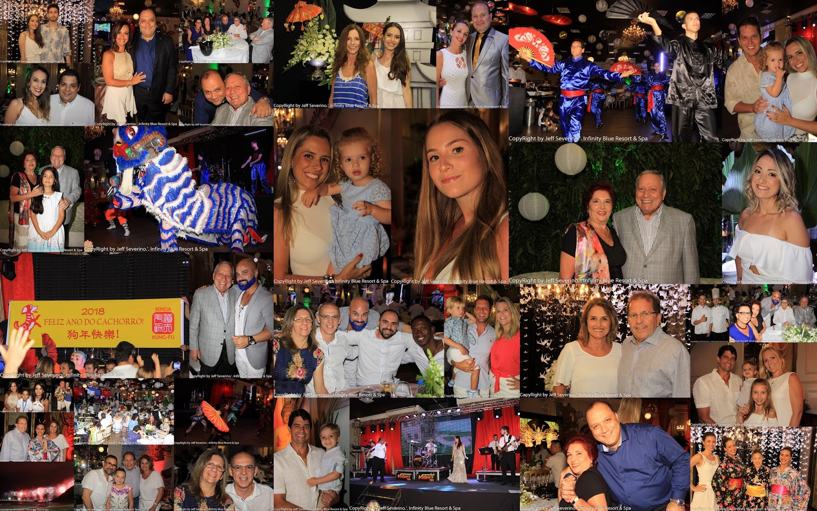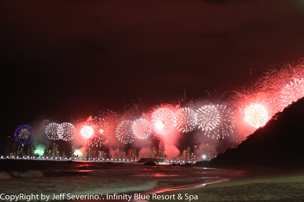 Durante o jantar houve apresentações típicas, baile com a Banda Volares e DJ Kako. Os artistas utilizaram o espaço entre as mesas para suas apresentações. A festa, na hora da “virada” foi na areia da praia com a tradicional queima de fogos do Infinity Blue e muita, mas muita champagne. Inesquecível!