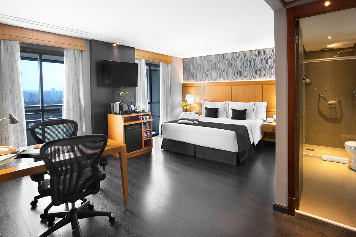O hotel – que também tem o selo Hall of Fame 2015 e é nota 8,4 no Booking.com – oferece 322 apartamentos confortáveis, incluindo as categorias Grand Premium (com internet, TV 42” com tecnologia da TV Interativa, poltronas Aeron e amenities Etro) e Grand Premium THE LEVEL (acesso ao LOUNGE com café da manhã premium, happy hour com bebidas e tapas das 17h às 20h e máquina Nespresso no apartamento).