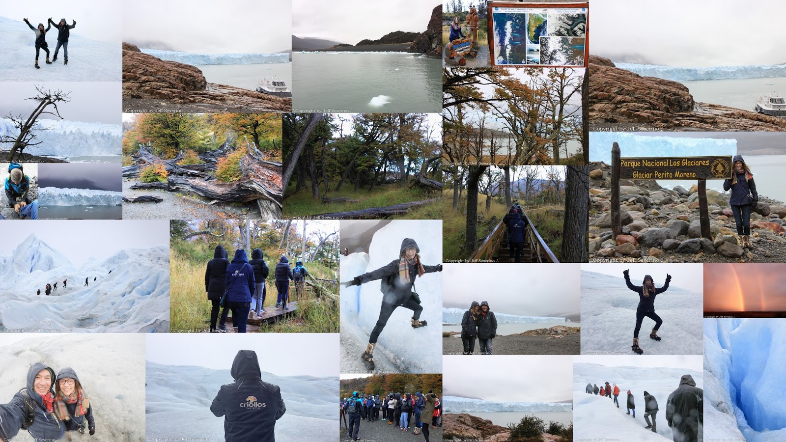 Das geleiras deste Parque Nacional o Glaciar Perito é a o mais famoso, bonito e imponente, localizado no extremo sul, em frente à Península Magalhães, a 78 Km de El Calafate, uma cidade que eu moraria com certeza. Este glaciar mostra um fenômeno surpreendente e curioso, onde a grande massa de gelo avança continuamente, fazendo com que a acumulação, ruptura e desprendimento de grandes blocos de gelo em sua frente de 5 km de largura, localizado no Canal dos Icebergs. A cada ruptura/desprendimento parece um trovão. Um tremendo espetáculo.