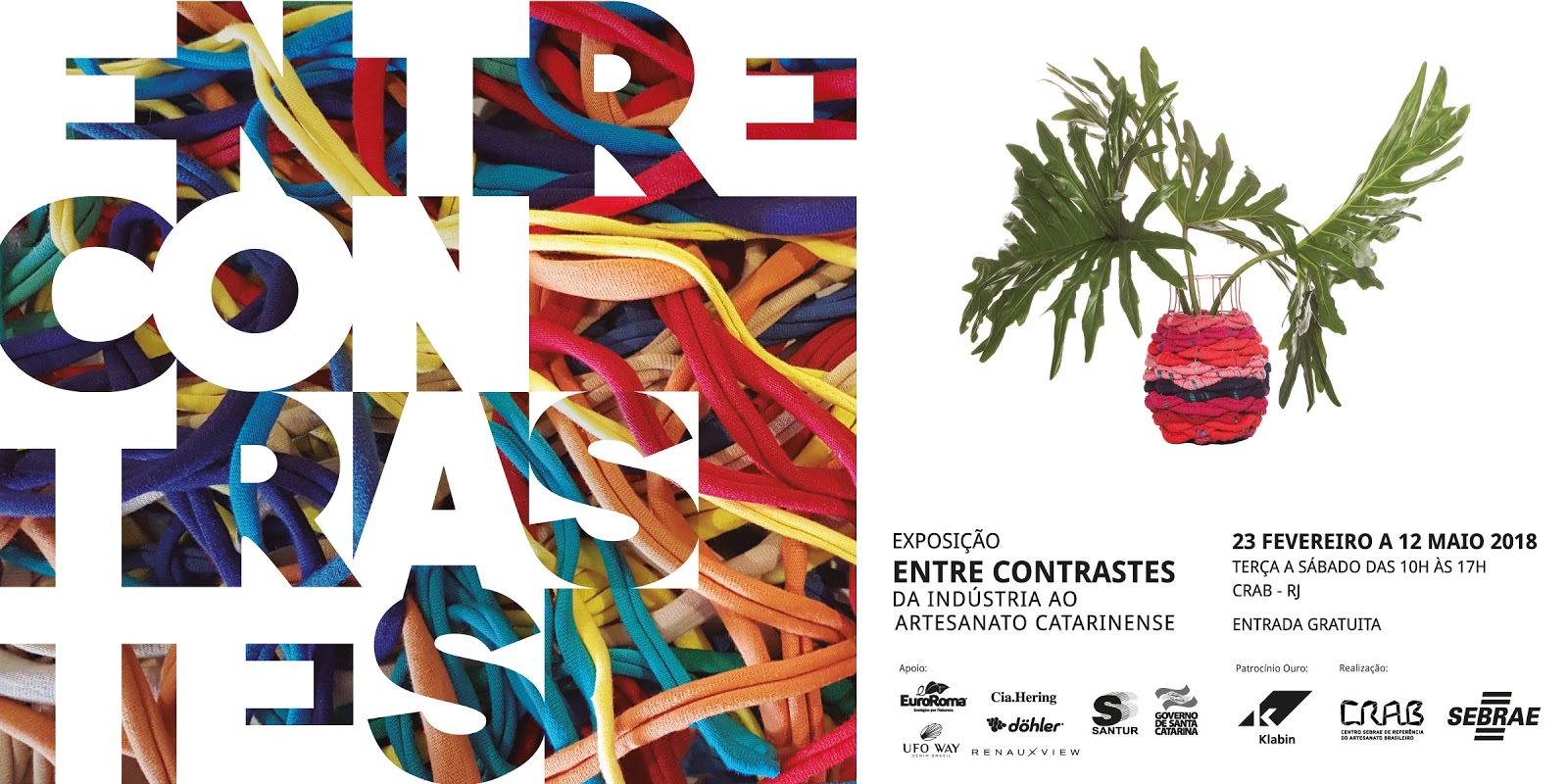 O local sedia até dia 12 de maio a exposição “Entre Contrastes”, que explora a qualidade do artesanato catarinense. As peças são produzidas por mais de 80 artesãos a partir de resíduos da indústria têxtil e do papel celulose.