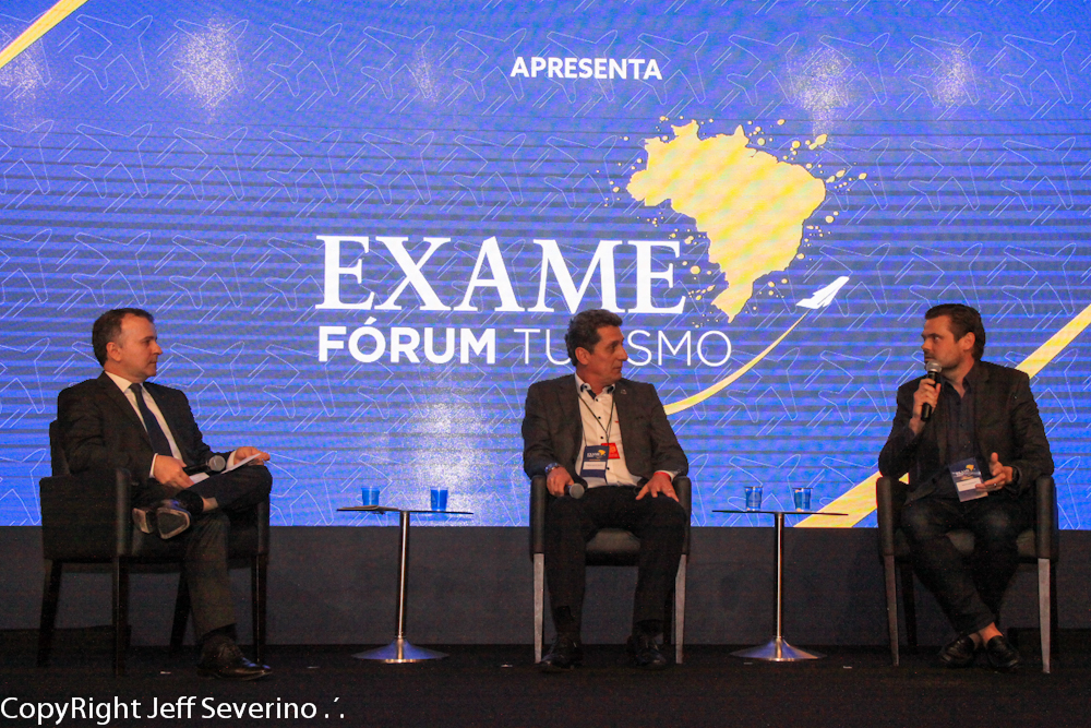 Em seguida, houve um debate, mediado por EXAME, sobre como as empresas estão se preparando para as novas tendências do turismo global. Participam Marcos Swarowsky, Diretor de Gerenciamento de Mercado do Expedia Group para América e Rogério Siqueira, presidente do Beto Carrero World. O Fórum contou também com a presença da Presidente da Embratur – Teté Bezerra.