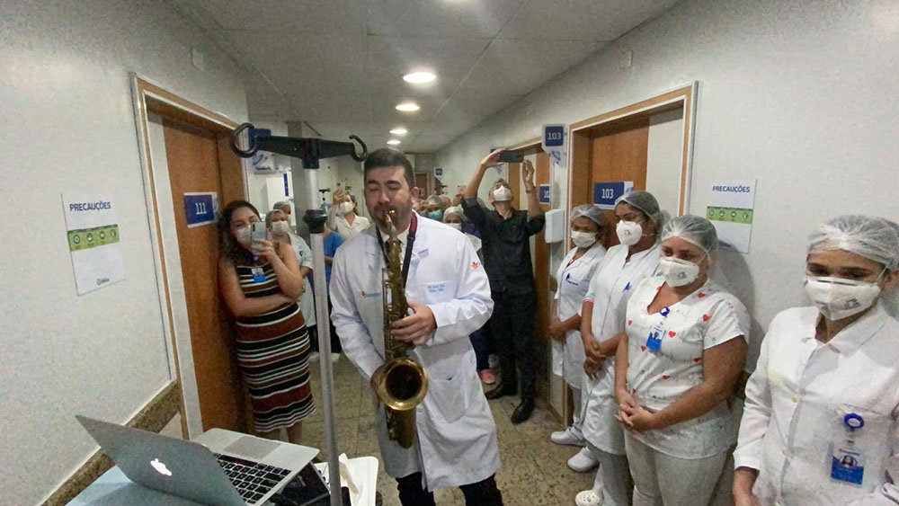 Depois de lutar pela vida e passar 20 dias respirando com a ajuda de aparelhos e diálises, ele finalmente deixou o hospital e comemorou a alta em grande estilo. O corredor do hospital ficou repleto de balões coloridos, muitas câmeras, flashes e uma atração especial: o som do saxofone.