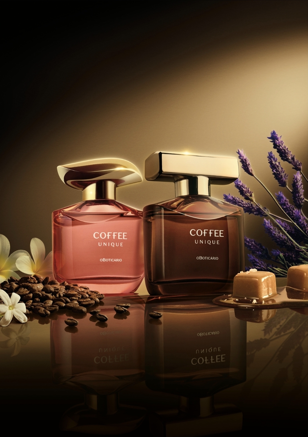A chegada de Unique se desdobra em duas versões que esbanjam autenticidade. Coffee Man Unique é um fougère oriental que abre com notas vibrantes de bergamota, limão e pimenta-rosa; em seu corpo, destacam-se café e lavanda, enquanto o fundo reúne tâmara, suede, baunilha, caramelo salgado, cedro e âmbar. Já Coffee Woman Unique é um floriental gourmand, que combina a leveza do limão, laranja, maçã vermelha e pimenta-rosa nas notas de saída; em seguida, revela um corpo com acorde de café, gerânio e bouquet de flores brancas; e no fundo, âmbar, cedro, cistus, caramelo salgado, fava tonka e patchouli. O frescor instigante da lavanda em Man e a delicadeza das flores brancas em Woman celebram a individualidade e a intensidade de encontros únicos.