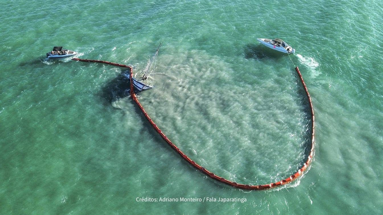 Nesse sentido, foi instalada barreira de contenção, com o objetivo de restringir e mitigar a dispersão dos resíduos oleosos no ambiente marinho.