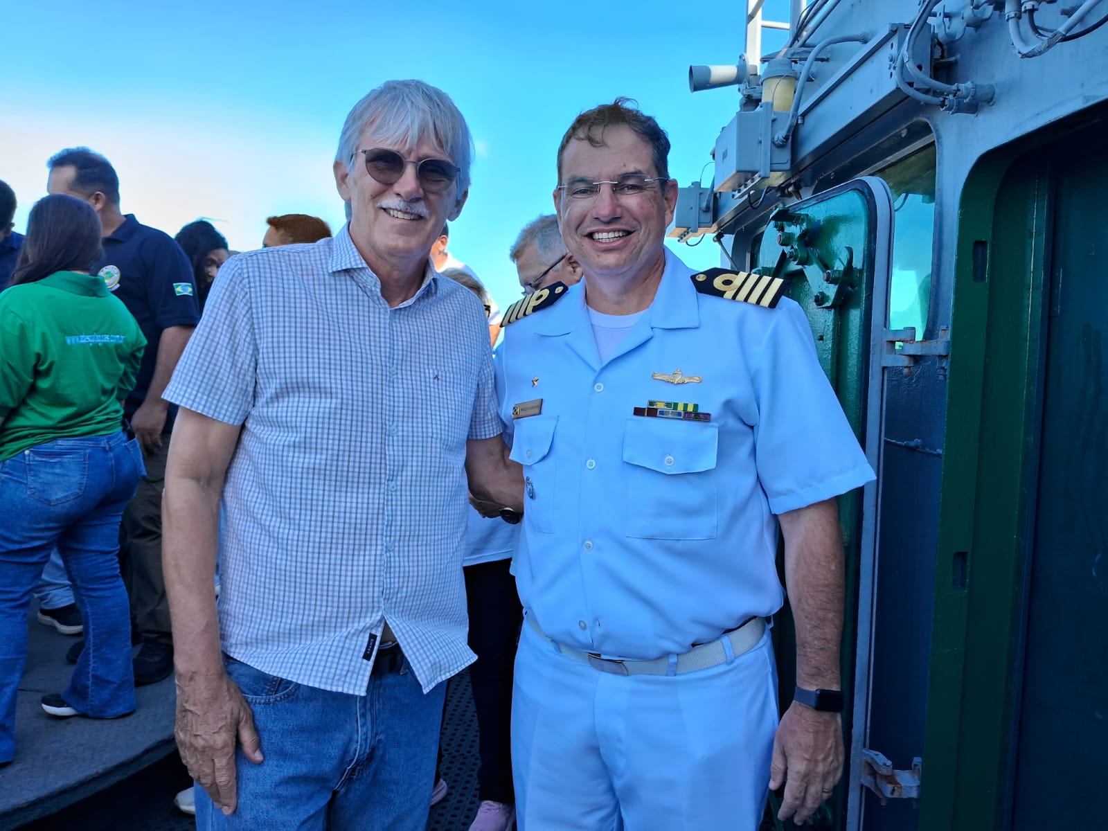 Paulo Hansen, presidente da Soamar/AL, e o Capitão de Mar e Guerra Mello Santos, comandante do Navio Doca multipropósito Bahia