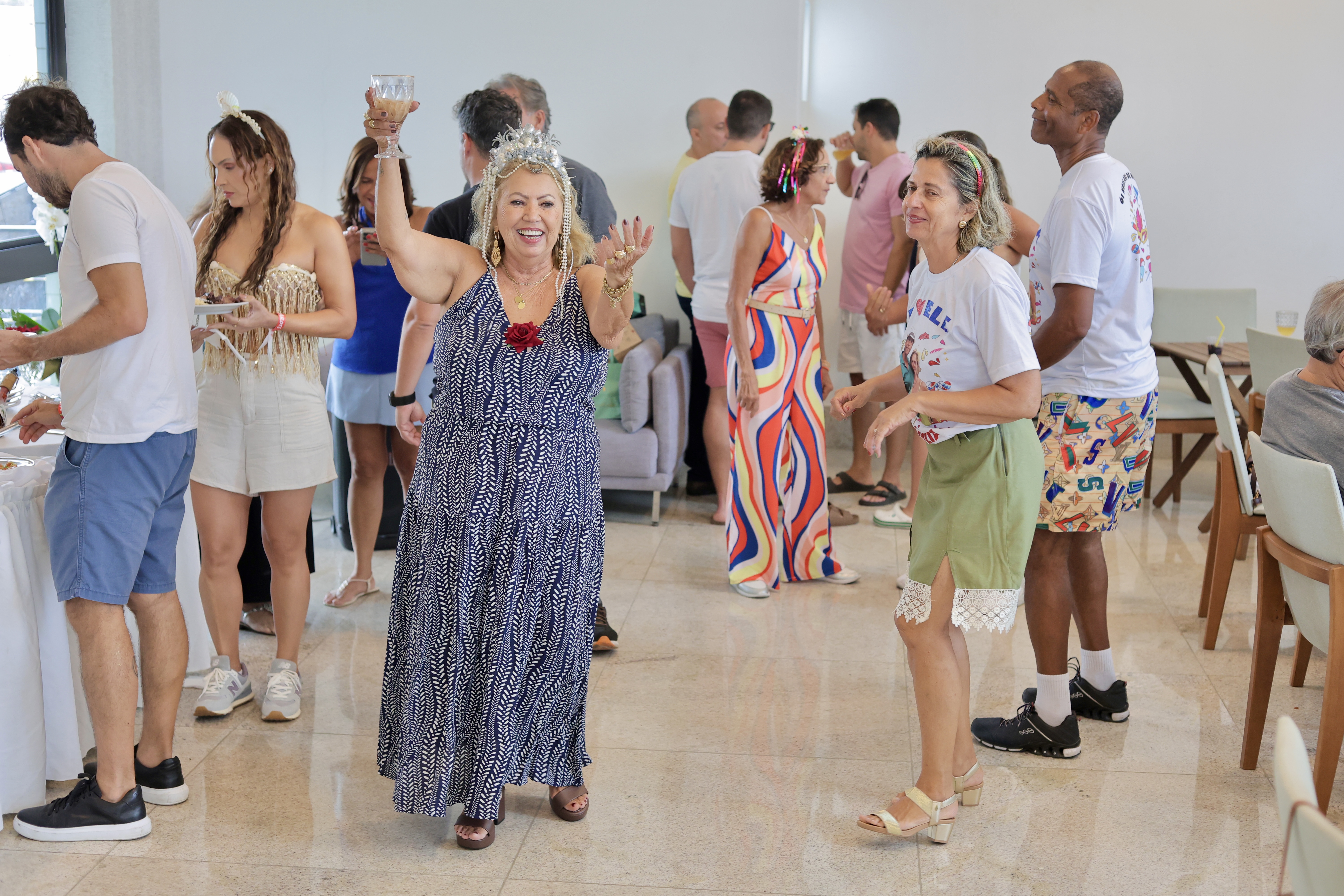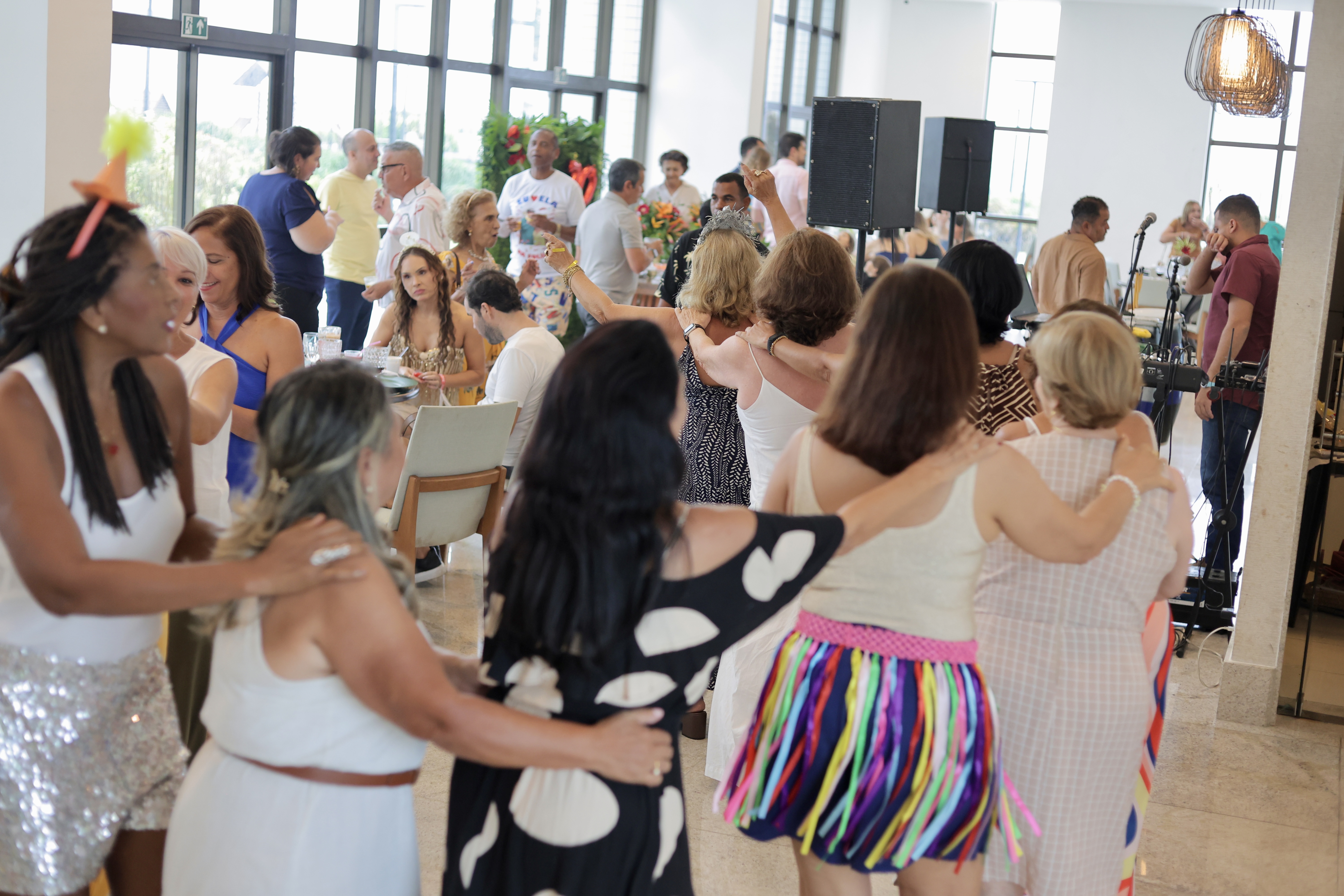Logo após os parabéns, a Banda Mauro Pancadão assumiu o comando da festa com um repertório de músicas carnavalescas, contagiando os convidados e levando muitos à pista de dança. A animação seguiu até as 21h, encerrando a celebração em clima de descontração e alto astral.
